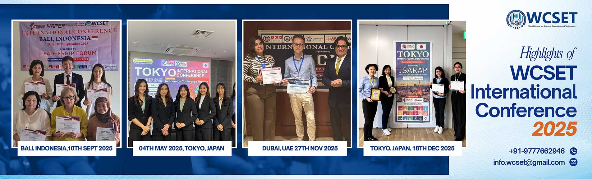 The World Centre for Science, Education, and Technology (WCSET) is a globally recognized organization committed to advancing knowledge, innovation, and technological excellence. WCSET serves as a hub for researchers, educators, and professionals to collaborate, exchange ideas, and drive progress in science, education, and technology. Through conferences, workshops, publications, and research initiatives, WCSET fosters an environment that promotes intellectual growth and sustainable development.